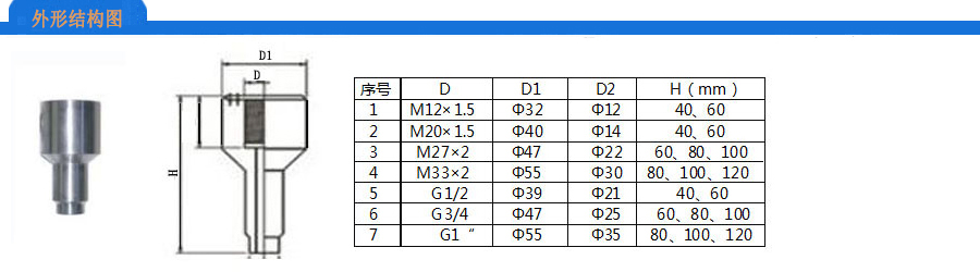 直行連接頭也叫直行凸臺、安裝底座,一端為內螺紋式,一端為焊接式。通常作為熱電偶、熱電阻和雙金屬溫度計安裝底座。 技術參數: 外形:直行連接頭、45連接頭 高 度:40mm、60mm、...
