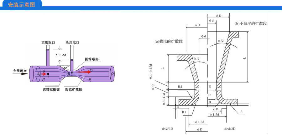 | 粗焊鐵板收縮段 | 200mm≤DN≤1200mm | 0.4≤β≤0.7 | 2×105≤Re ≤2×106 | 碳鋼或不銹鋼 |