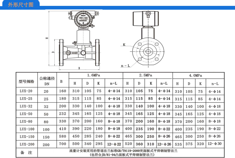 PN≤1.6MPa為鋁合金外殼; PN≤4.0MPa為鑄鋼或不銹鋼外殼;PN>4.0MPa為特殊規(guī)格;請在訂貨時注明。 |
