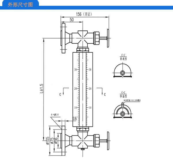 法蘭連接DN20、DN25(標(biāo)注法蘭尺寸) 螺紋連接G3/4” |