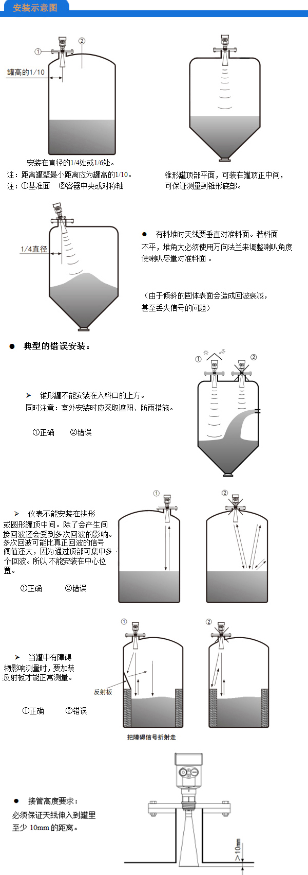 不銹鋼(喇叭天線) PP/-40~80℃(棒式天線) PTFE/-40~230℃(棒式天線) |