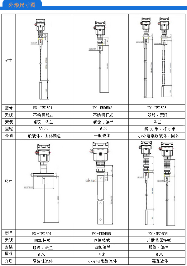 | FX-URD50 | 江蘇飛翔儀表導波雷達物位計 |